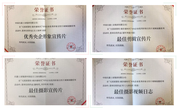 本次展播活動(dòng)分設(shè)形象宣傳片、員工視頻日志兩個(gè)賽道,從中央企業(yè)報(bào)送的2600余部作品中,評(píng)選出了“優(yōu)秀央企形象宣傳片”、“最具大國(guó)精神宣傳片”和“央企員工優(yōu)秀視頻日志”等十二個(gè)種類(lèi)、120部?jī)?yōu)秀作品,中國(guó)兵器工業(yè)集團(tuán)4部作品獲獎(jiǎng)。
