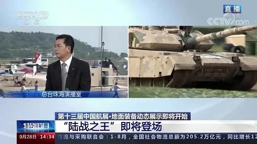 9月28日-10月3日,第十三屆中國(guó)國(guó)際航空航天博覽會(huì)在廣東珠海舉行,中國(guó)兵器工業(yè)集團(tuán)有限公司作為主辦單位閃耀亮相,推出裝甲突擊、火力打擊、智能彈藥、防空反導(dǎo)、無(wú)人裝備、非傳統(tǒng)安全、軍工軍技合作等領(lǐng)域新產(chǎn)品及成體系成建制武器系統(tǒng)和解決方案,全方位展示我國(guó)陸軍外貿(mào)武器裝備的最高水平以及雄厚的科技創(chuàng)新、自主研發(fā)與先進(jìn)制造能力,受到廣泛關(guān)注。 央視《新聞聯(lián)播》報(bào)道第十三屆中國(guó)航展,著重介紹了VT4主戰(zhàn)坦克,關(guān)注航展公眾日中國(guó)兵器館情況。9月28日下午央視《新聞直播間》航展特別節(jié)目《藍(lán)天盛會(huì)》邀請(qǐng)集團(tuán)公司訪談嘉賓做客直播間對(duì)中國(guó)兵器館兵器工業(yè)集團(tuán)展區(qū)等進(jìn)行1小時(shí)直播;9月28日下午、10月2日下午分別對(duì)地面裝備動(dòng)態(tài)表演進(jìn)行兩場(chǎng)直播。央視《朝聞天下》、《新聞直播間》、《共同關(guān)注》、《天下財(cái)經(jīng)》、《軍事報(bào)道》、《正午國(guó)防軍事》、《軍武零距離》等相繼推出集團(tuán)公司參展裝備的報(bào)道。
