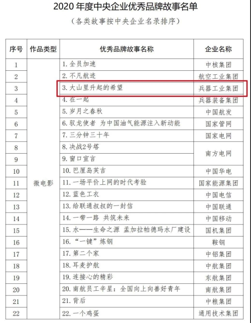 兵器工業(yè)集團(tuán)品牌建設(shè)案例入選2020年度100個國有企業(yè)品牌建設(shè)典型案例和100個優(yōu)秀品牌故事