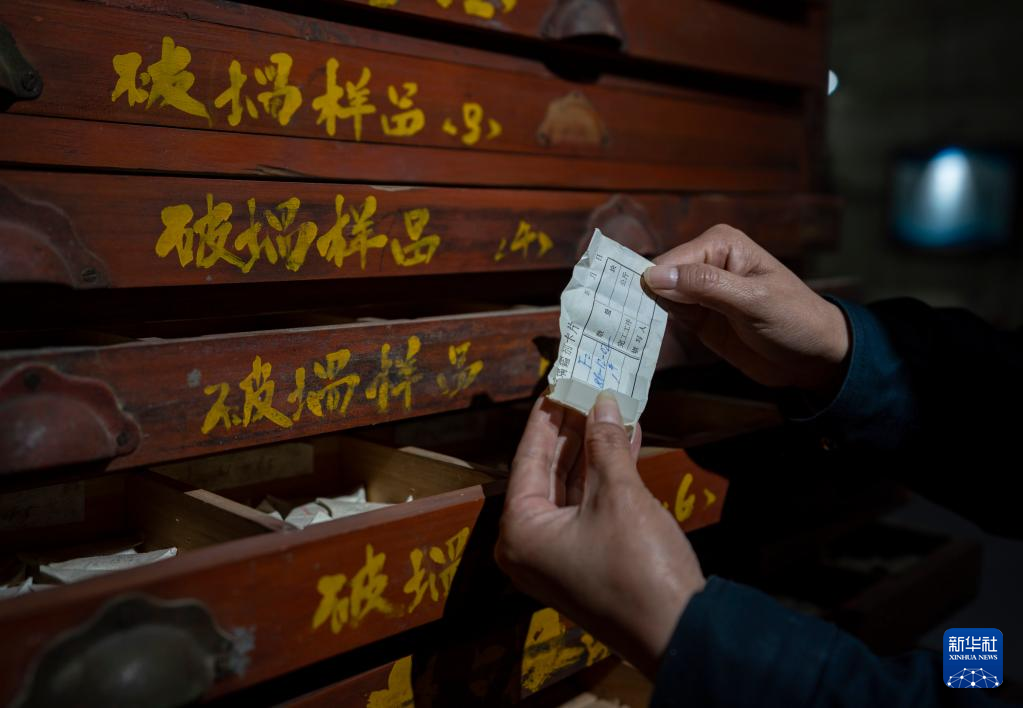 是5月16日拍攝的中國光學(xué)歷史博物館內(nèi)收藏的一臺玻璃長刻度機。  5月16日,工作人員在展示玻璃樣品柜內(nèi)的一個玻璃樣品。