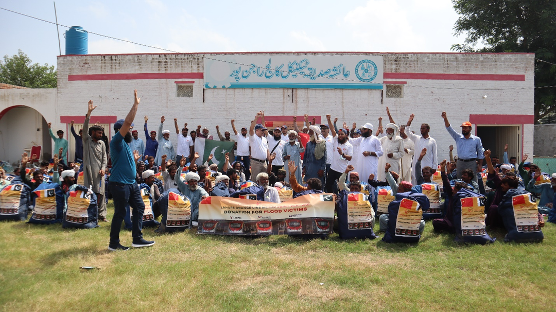 橙線運(yùn)維項(xiàng)目所處的旁遮普省西南腹地木爾坦(Multan)地區(qū)是巴基斯坦受災(zāi)最嚴(yán)重的地區(qū)之一,9月初,洪水沖垮了大部分村莊的道路與房屋,農(nóng)田被毀,村民們極度缺少食物及基本生活物資。了解到這一情況后,北方國際聯(lián)合廣州地鐵立即組織采購了米面、糧油、藥品、生活用品等救災(zāi)物資。