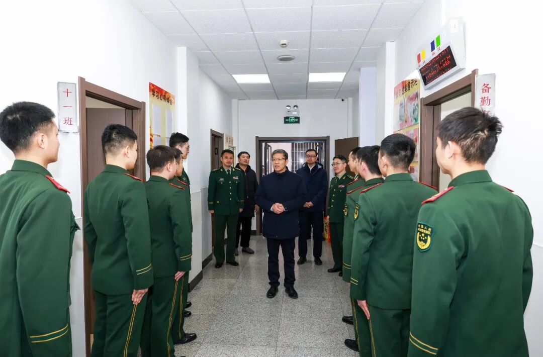 新春佳節(jié)將至,歲寒情深暖心。2月13日,中國兵器工業(yè)集團(tuán)有限公司黨組書記、董事長周治平到總部三里河辦公區(qū)、車道溝十號院執(zhí)勤武警營區(qū),向一線官兵致以誠摯問候和新春祝福。  周治平在總部三里河辦公區(qū)慰問執(zhí)勤武警官兵